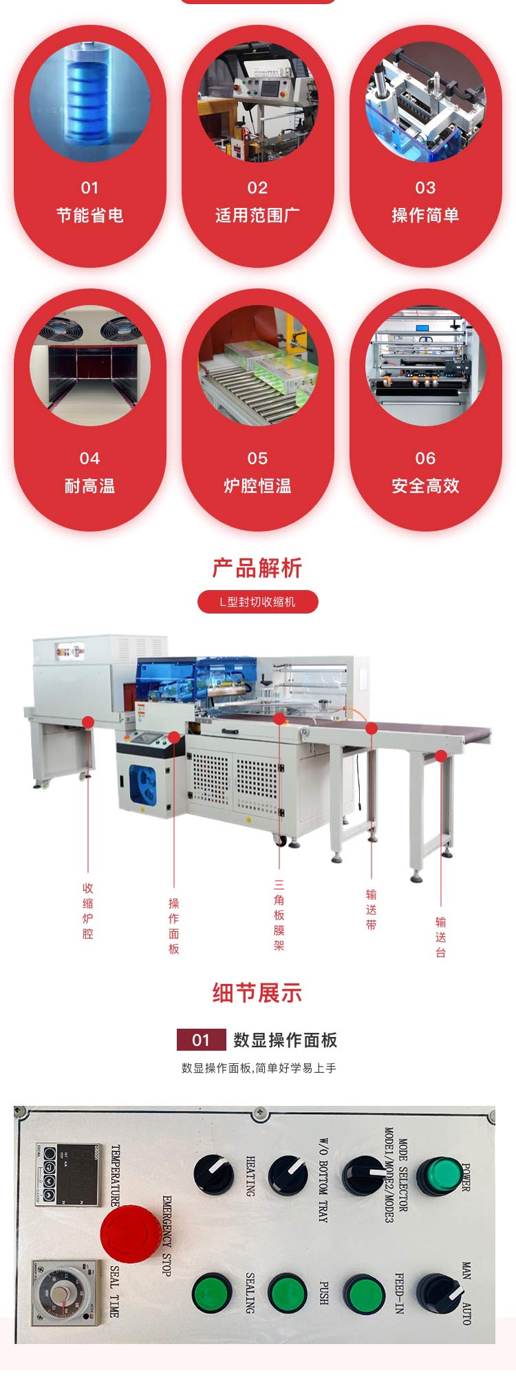 優(yōu)勢(shì):耐用零部件,封切收縮一步到位,經(jīng)濟(jì)省錢