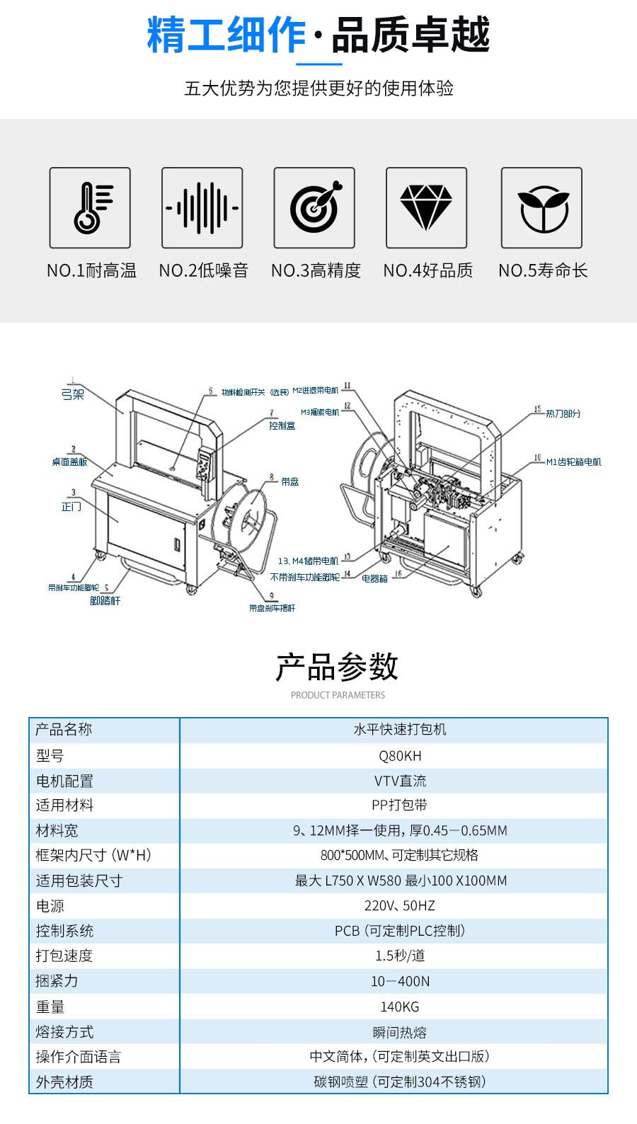 介紹:產品簡介: 全自動打包機選用進口零部件,電器元件。機器操作簡單,具有工作效率高、省時省電,打包質量高、故障率低、壽命長等優點。 應用行業: 該款打包機主要用于商業、郵政、鐵路、銀行、食品、書刊發行等行業。(也是打包帶機、pp帶打包機)