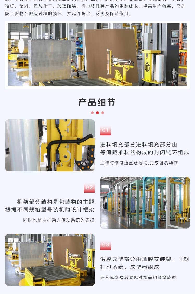介紹:為適應(yīng)貨物集裝化儲(chǔ)存、運(yùn)輸及機(jī)械化裝卸作業(yè)的包裝要求,設(shè)計(jì)制造了托盤式、圧頂式、阻拉型、預(yù)拉型自動(dòng)薄膜纏繞系列產(chǎn)品,廣泛適用于外貿(mào)出口、食品飲料、制罐、造紙、染料、塑膠化工、玻璃陶瓷、機(jī)電鑄件等產(chǎn)品的集裝成本,提高生產(chǎn)效率,又能防止貨物在搬運(yùn)過程的損壞,并起到防塵、防潮及保潔作用。 適用于快速運(yùn)輸或儲(chǔ)存; 適應(yīng)性強(qiáng),低耗,減輕勞動(dòng)強(qiáng)度; 對(duì)包裝物能起到防塵、防潮、保潔的作用; 減少包裝物的表面擦傷,提高表面質(zhì)量,使包裝更牢固.