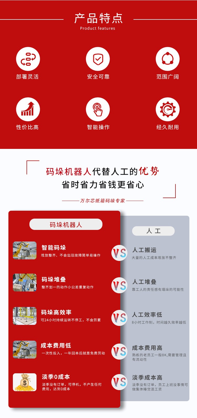 與傳統的機器人相比,協作碼垛機器人具有以下特點: